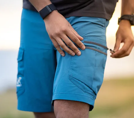 The shorts' lightweight material and 4-way stretch panels make them ideal for hiking.