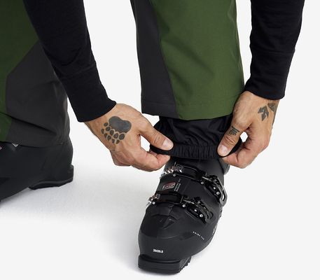 Leg endings equipped with snow gaiters that keep you dry and fits comfortable over your ski boots.