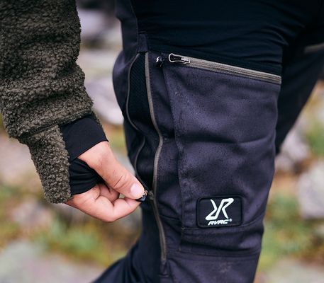 The RVRC GP Pro Trousers are a pair of highly durable, multifunctional outdoor trousers designed to last in harsh outdoor settings. Made with PFC-free Hypershell® material, these trousers are both wind- and water-repellent. Durable reinforcements over the thighs, lower legs, and seat add extra strength and protect against wear and tear. The 4-way stretch panels at the top, inside thighs, and behind the knees ventilate and provide incredible comfort. Thigh ventilation with zippers comes in handy when you’re getting too hot.