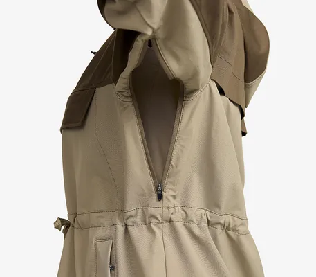The Rambler Lightweight Anorak is a highly breathable, lightweight jacket mainly crafted from recycled materials. It’s designed with strategically placed 4-way stretch parts for ultimate mobility and sections in durable canvas. The cuffs, hood, and waist are adjustable—features for the opportunity to create a personalized fit. You can store your belongings in one of the many smart pockets, including a kangaroo pocket at the front. Additionally, it’s equipped with open ventilation at the back, and the jacket also has zippered side ventilation under the arms so that you can release excess heat and moisture during more demanding activities such as walking.