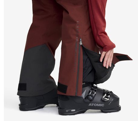 Leg endings equipped with snow gaiters that keep you dry and fits comfortable over your ski boots.