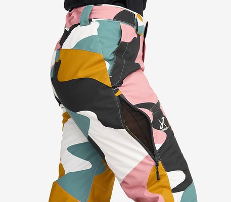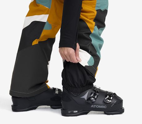 Leg endings equipped with snow gaiters that keep you dry and fits comfortable over your ski boots.